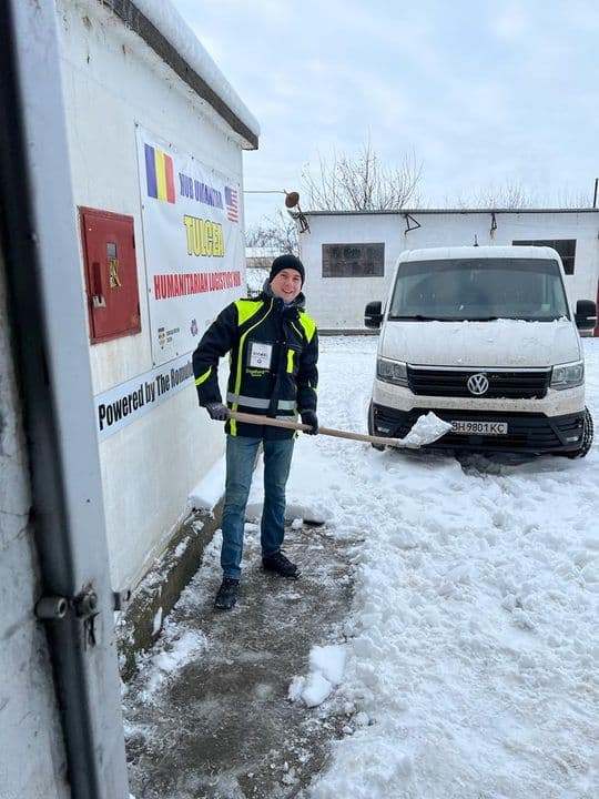Snow has begun to pile up around the Tulcea Humanitarian Logistics Hub in the last couple weeks. We’re grateful for Viorel (right) and the rest of our Hub team who remain committed to clearing the way for trucks to come in and out safely.
