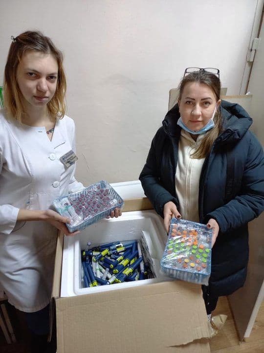 Donating partners, Insulin for Life USA, continue to send critical shipments of insulin, supporting over-stretched hospitals throughout Ukraine. Many would be suffering without these necessary vials and their consistent delivery to teams like those at a Mykolaiv hospital (right). Much of this ongoing effort is made possible through your support, along with our diligent Tulcea Hub team, currently led by Co-Director of Warehousing Glen Kinney (standing, below)