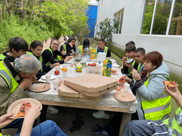 On May 14th, a group of 10 children from the NOROC foundation came to the Tulcea Hub to work preparing a food shipment to send to Ukraine. They built food boxes and prepared pallets for the awaited food procurement. These shipments would be sent to family and orphanage NGO’s across Ukraine. The students learned warehousing skills like working with pallet jacks, shrink wrapping, and boxing skills. Our team and NOROC’s students had a great time together, working to help Ukraine.