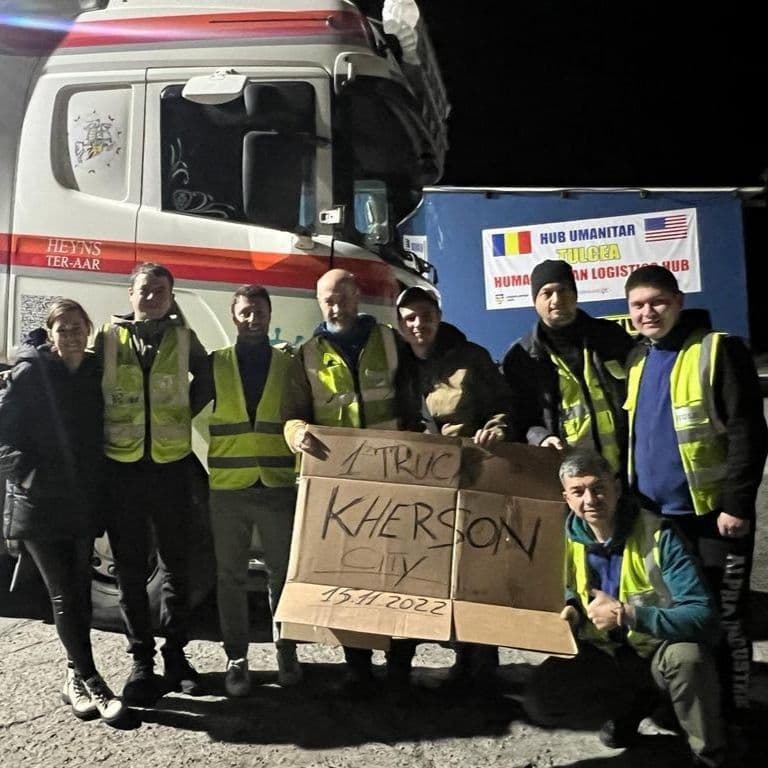 The journey to deliver in Kherson was not easy, as most roads in this part of Ukraine are damaged and require driving large vehicles at a snail's pace, avoiding edges of potholes and craters caused by rocket fire. While unloading the delivery, one of our team members asked the truck driver how we could thank him for his time and services he said: